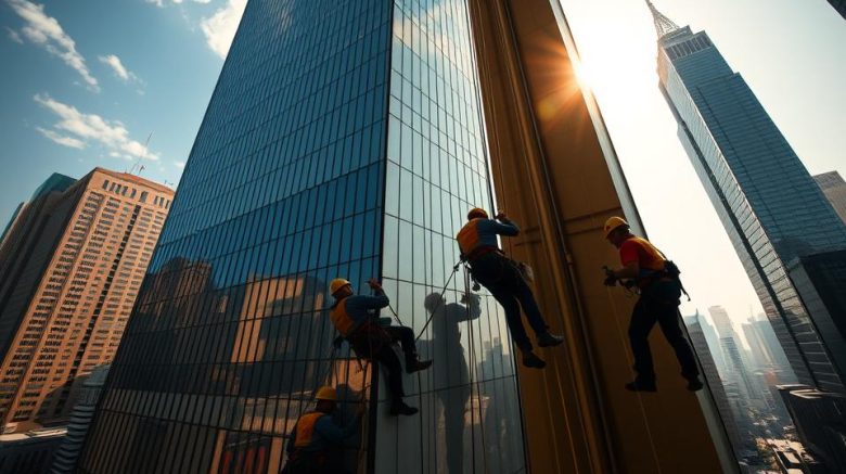 Façade cleaning and high-rise exterior maintenance